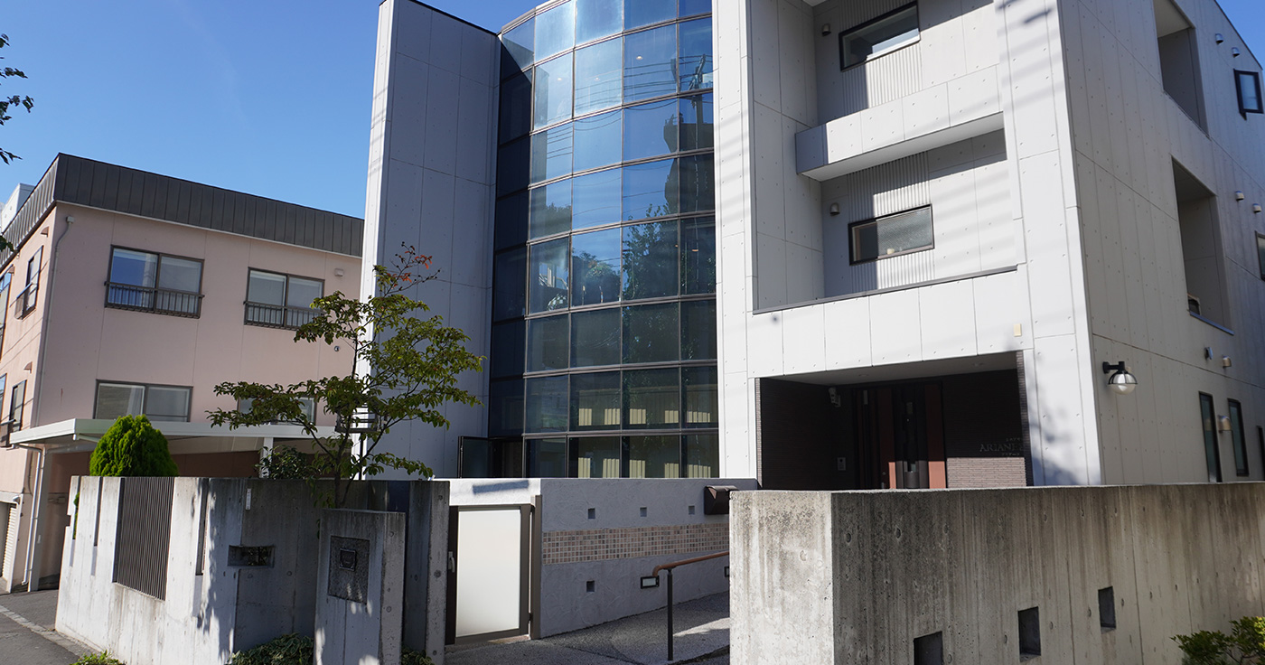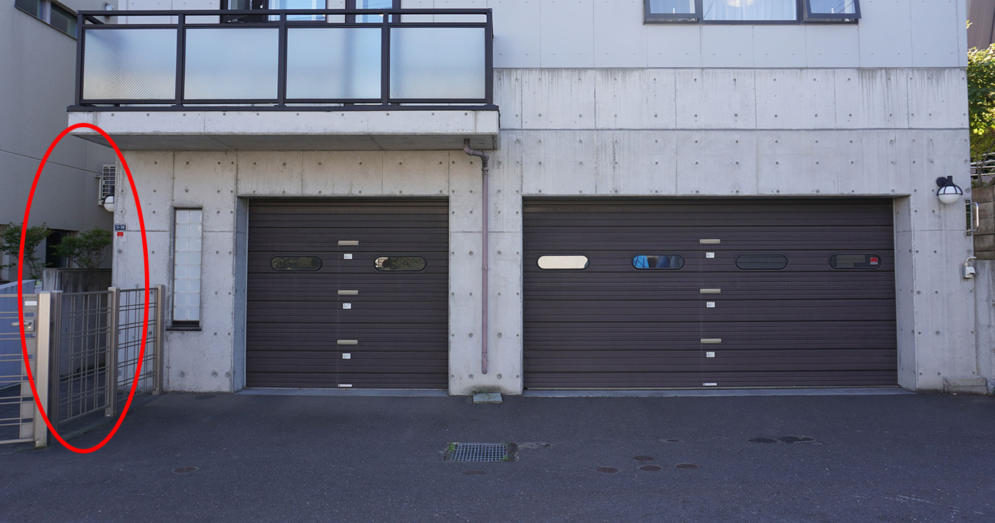 駐車場は建物裏側にございます。車でお越しの際は写真左側の通路より正面玄関にお越しください。
